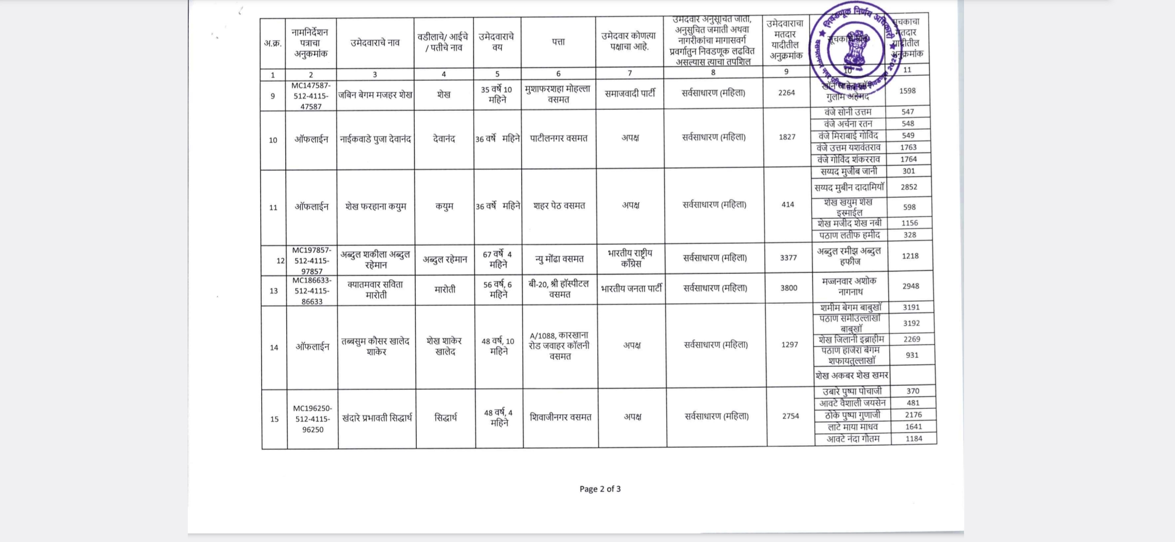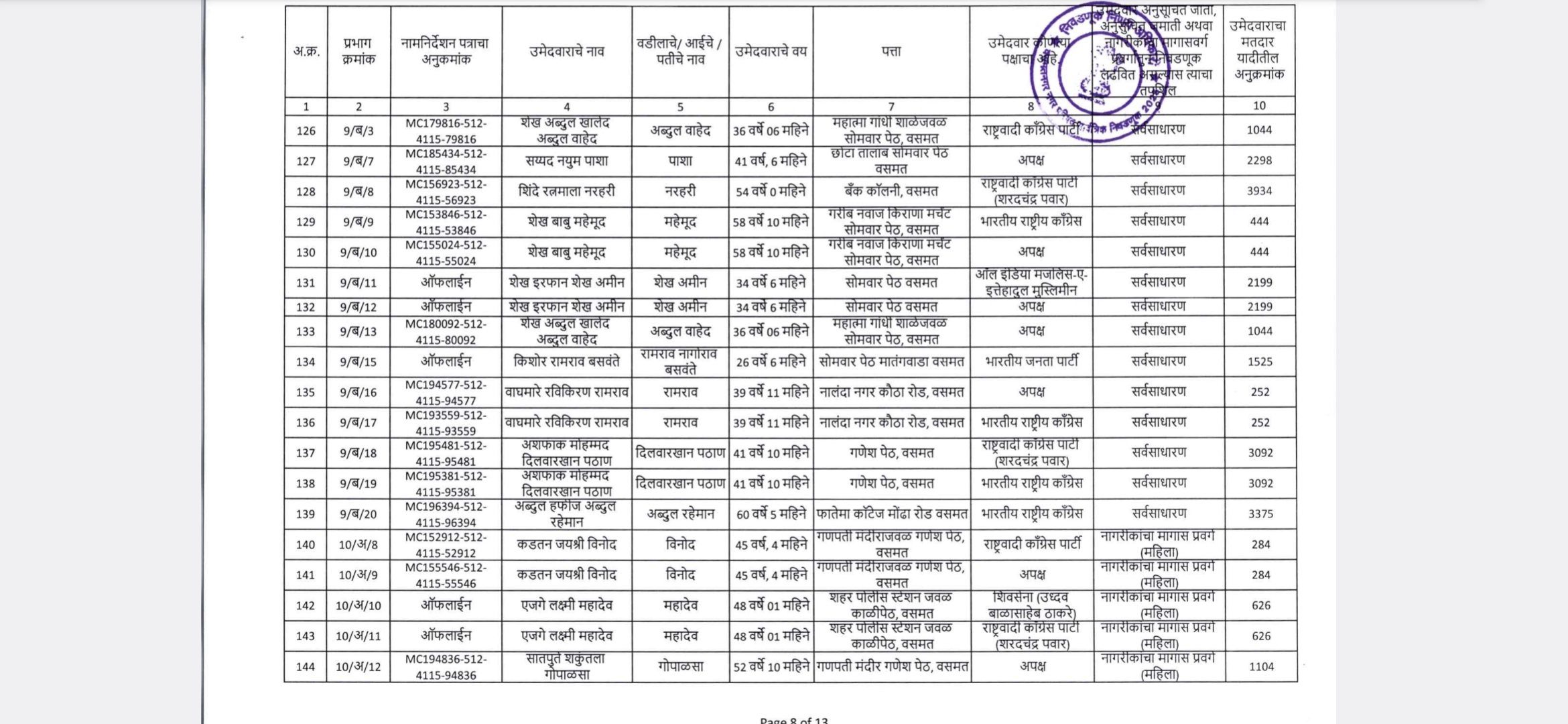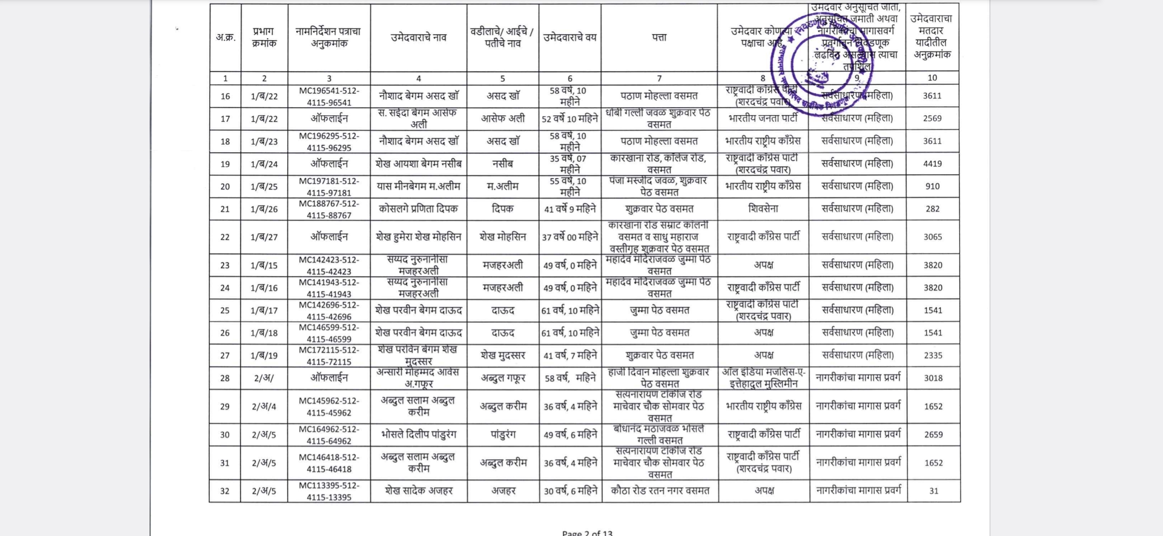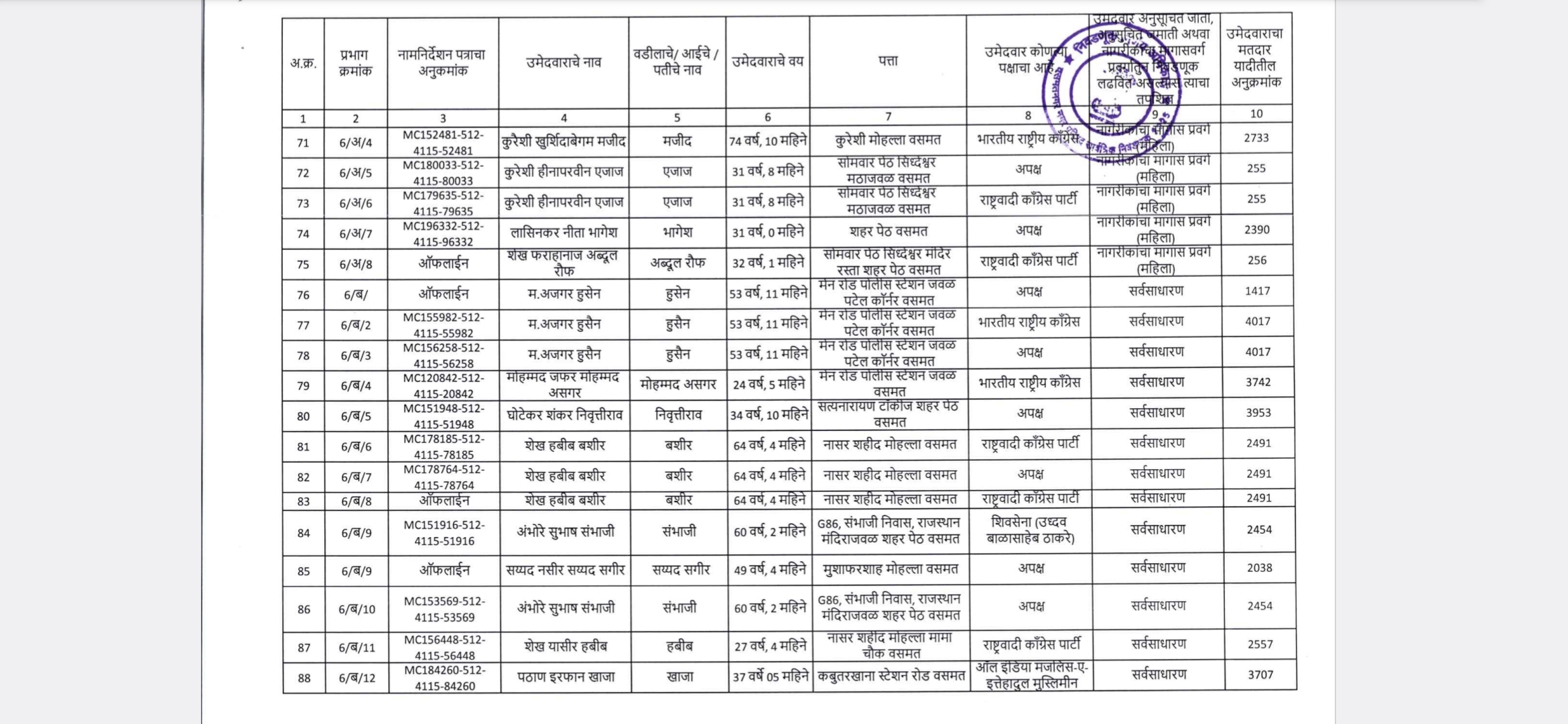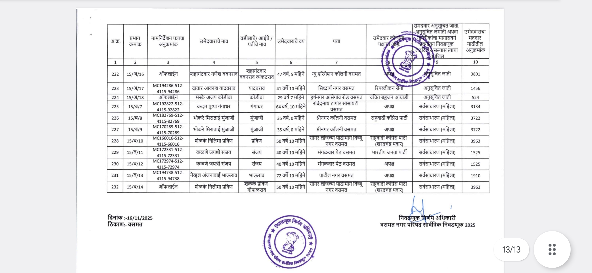 वसमत नगर परिषद निवडणूक आजचे प्राप्त उमेदवारी अर्ज