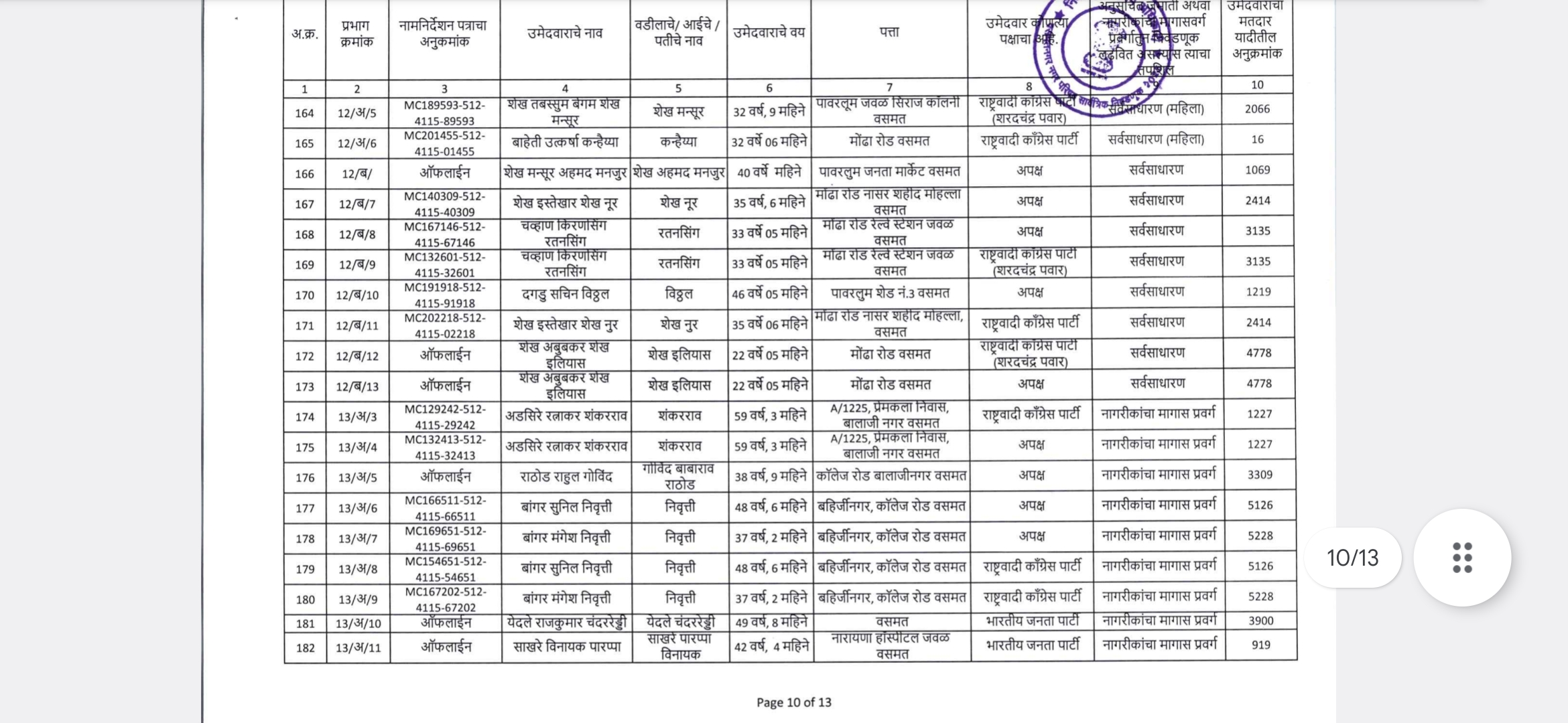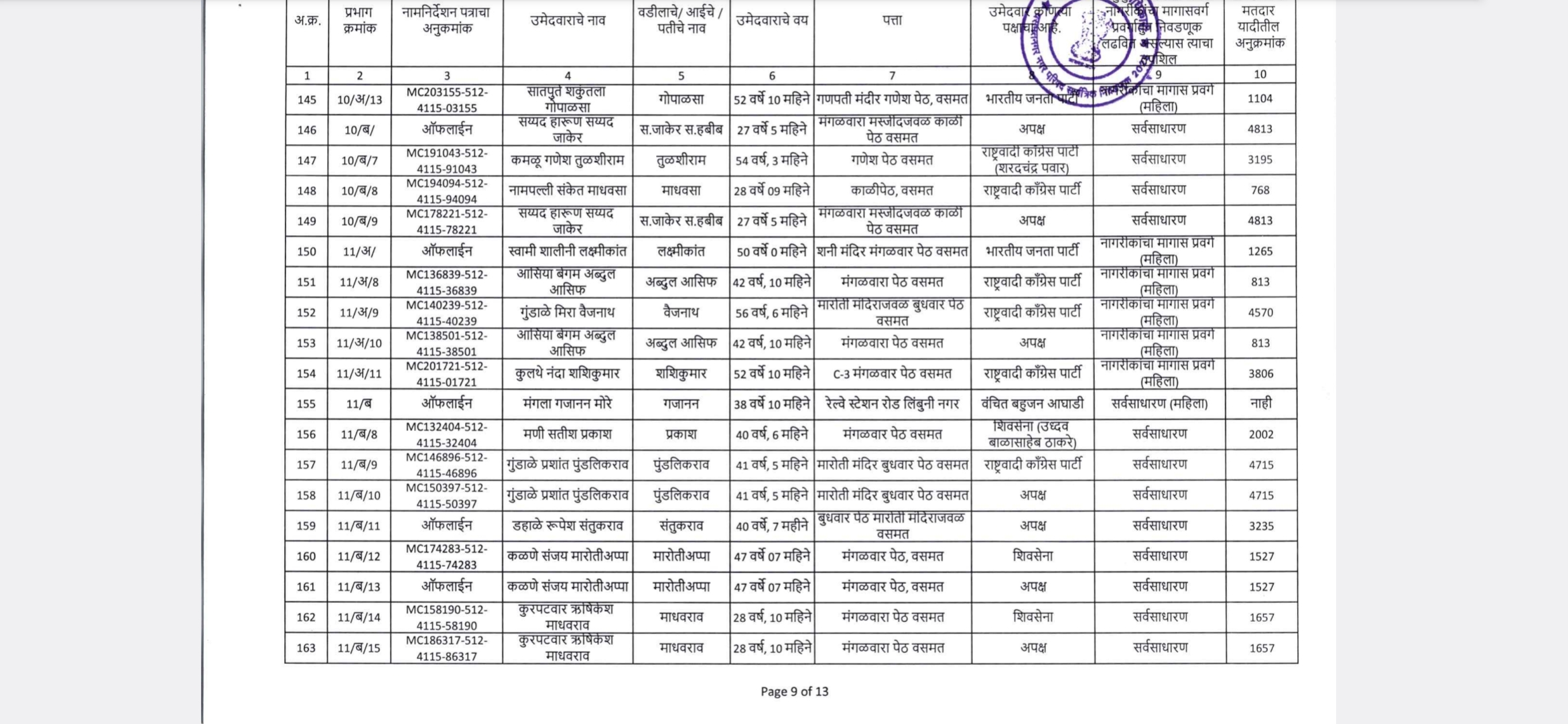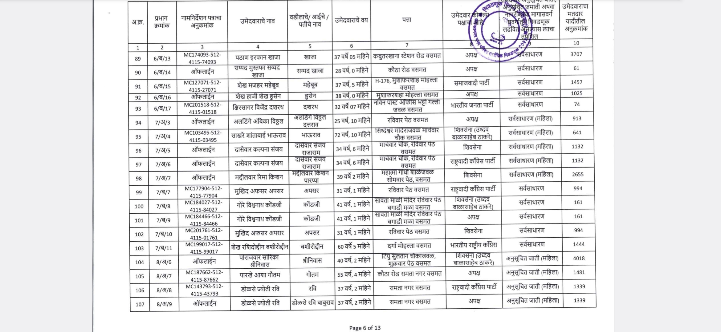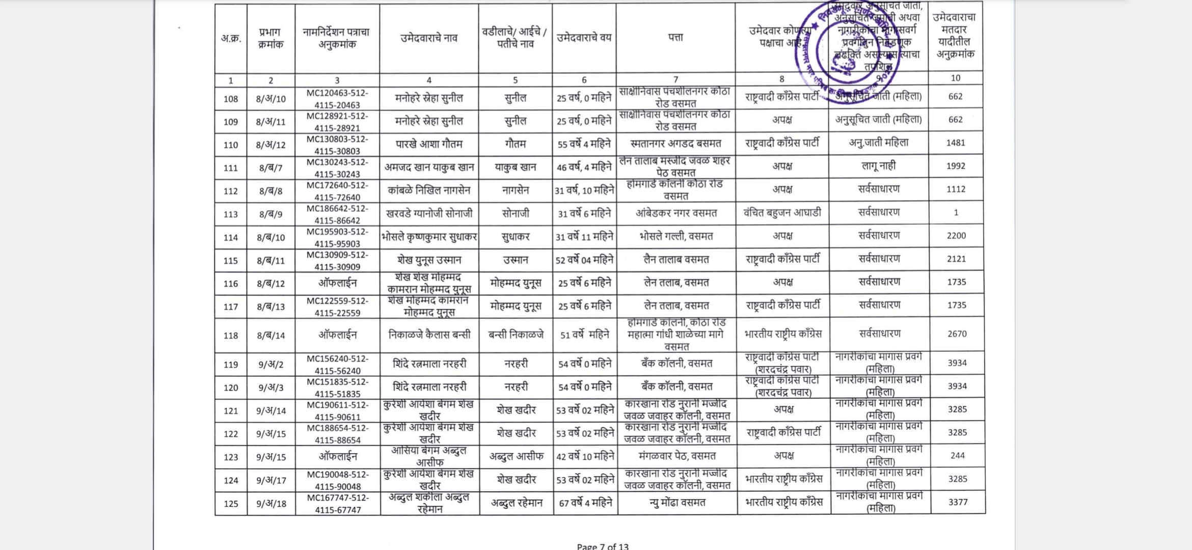 वसमत नगर परिषद निवडणूक आजचे प्राप्त उमेदवारी अर्ज