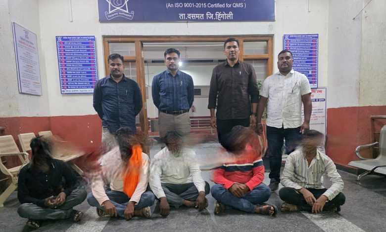 पोलिसांनी खालील पाच जणांना ताब्यात घेऊन वसमत शहर पोलीस ठाण्यात नेऊन कारवाई करण्यात आली आहे.